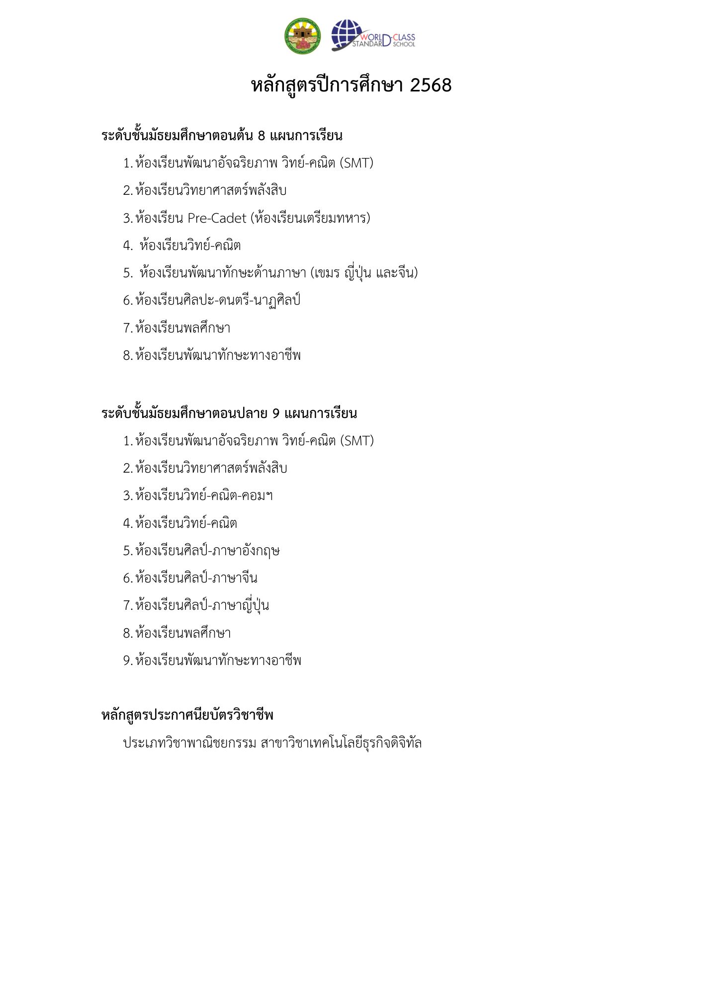 หลักสูตรที่เปิดสอน